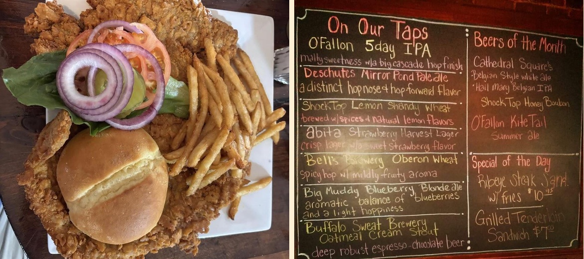 The pork tenderloin sandwich steals the show; many claim it rivals any meal you'll find around. For lighter bites, the farm-raised catfish bites offer flavors that are notable. If a hearty burger is in order, try the 1/2 lb char-grilled option paired with beer-batter onion rings.